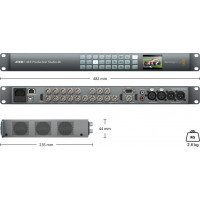 Модель с расширенным функционалом позволяет работать со стандартами SD, HD и Ultra HD, благодаря чему видеомикшер может обрабатывать видеосигналы самых разных источников, таких как камеры, дисковые рекордеры и компьютеры. Модель имеет 10 входов, четыре модуля первичного кеинга и модули вторичного кеинга, встроенный звуковой микшер, режим многооконного мониторинга, три дополнительных выхода и емкую библиотеку мультимедиа для хранения клипов. ATEM 1 M/E Production Studio 4K позволяет выполнять цветовой кеинг, создавать традиционные и анимированные переходы, а также цифровые видеоэффекты с расширенным функционалом, позволяет работать со стандартами SD, HD и Ultra HD, благодаря чему видеомикшер может обрабатывать видеосигналы самых разных источников, таких как камеры, дисковые рекордеры и компьютеры. Модель имеет 10 входов, четыре модуля первичного кеинга и модули вторичного кеинга, встроенный звуковой микшер, режим многооконного мониторинга, три дополнительных выхода и емкую библиотеку мультимедиа для хранения клипов. ATEM 1 M/E Production Studio 4K позволяет выполнять цветовой кеинг, создавать традиционные и анимированные переходы, а также цифровые видеоэффекты.